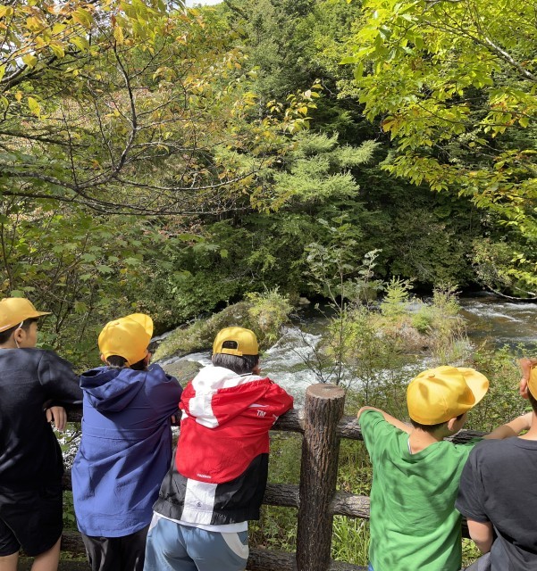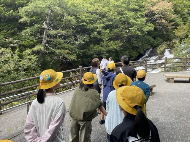 9月25日【6年生】修学旅行(竜頭の滝) 公開日 2025/09/25 更新日 2025/09/25 お知らせ 竜頭の滝に来ました。華厳滝が残念ながら水を止めていたので見学できませんでした。ゆずの滝横から眺めて楽しんでいます。