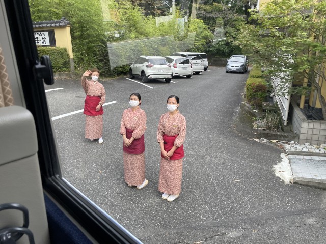 ホテルを出発しました。一晩大変お世話になりました。これから江戸村に向けて出発します。
