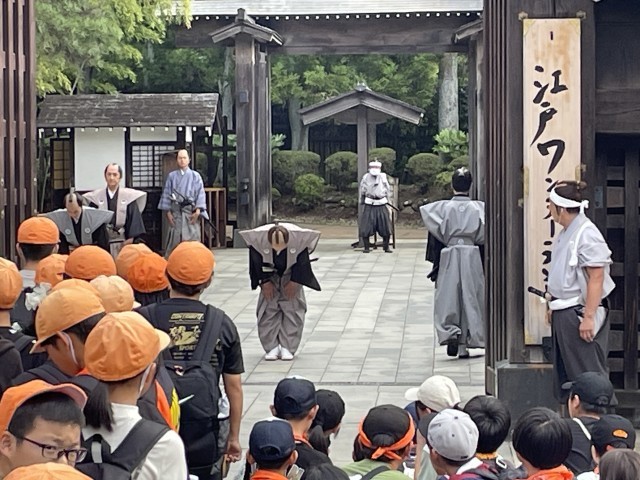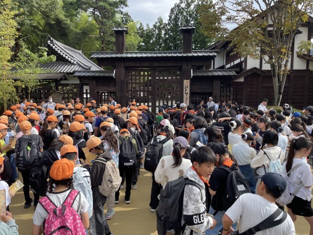 江村に到着しました。開門の儀をみんなで見学しました。これから班別自由行動です。
