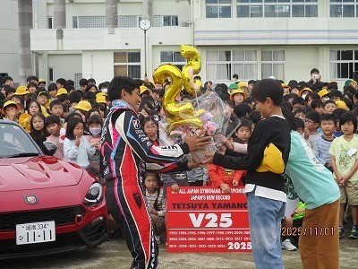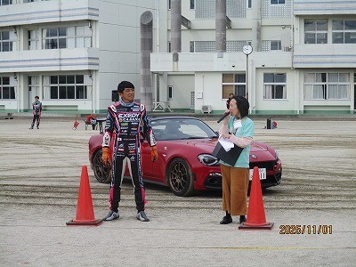 おおいさわ小学校PTA主催の「ワイワイおおいさわ」が行われました。最初に特別授業を行いました。守谷在住プロレーサーの山野哲也氏を講師に「交通安全教室」を開きました。