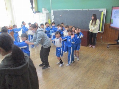 水曜日は、ロング昼休みの日です。学級で相談した遊びをおこないます。1年生の学級では、音楽に合わせてじゃんけん列車を行っていました。楽しそうな音楽に合わせて、1年生の笑い声か聞こえてきました。