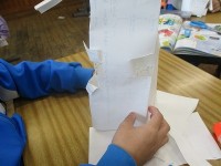 2年生の図画工作の時間です。課題は、「まどのあるたてもの」です。紙を立体にして...