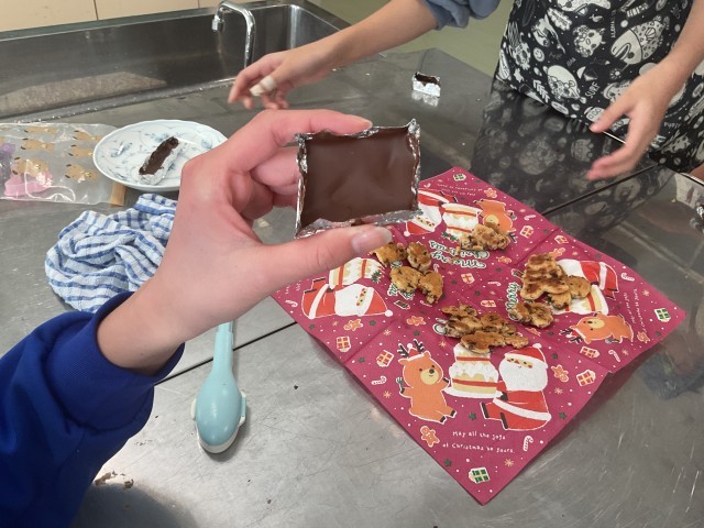 5年生が算数の時間で作成した図形をもとに、お菓子作りに挑戦しました。三角形や台形など算数の時間に学習した図形でチョコやクッキーを作りました。体験を通した学習を通して、子どもたちの学びへの意欲を高めています。