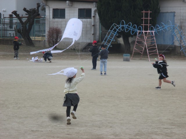 1年生活科 空高く舞い上がれ 公開日 2026/01/20 更新日 2026/01/20 学校日記 1年生が生活科で作った凧を揚げました。寒空の下、全力で走り、空高く舞い上がりました。元気な姿に心ほっこりです。