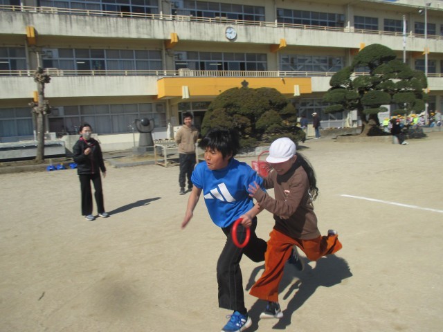 【大野のバトン】熱きリレーでつなぐ、卒業前レク! 公開日 2026/03/12 更新日 2026/03/12 学校日記 卒業を間近に控えた6年生が、5年生との交流レクレーションを行いました。種目は、学年対抗の「全員リレー」です。校庭を全力で駆け抜ける子供たちの姿からは、一歩も譲らない真剣勝負の熱気が伝わってきます。驚いたのは、胸を借りるつもりで挑んだ5年生の目覚ましい成長です。その力強い走りとチームワークに、最上級生である6年生も「いつの間にこんなに頼もしくなったのか」と、驚きと感心の表情を隠せませんでした。抜きつ抜かれつの大接戦の中、手渡されていくのはリレーのバトンだけではありません。大野小学校をリードしてきた6年生の「想い」が、この競技を通じて、確実に次世代を担う5年生へと引き継がれました。最高学年のバトンは、今、しっかりと手渡されました。これからの5年生の活躍が、ますます楽しみになる熱い一日となりました。