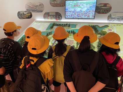 鶴ヶ城の中を見学しています。 歴史を感じています。