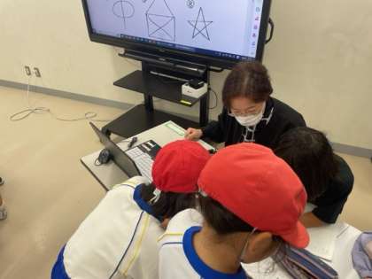 1回目の課題は「一筆書き」です。「これはできた。」「これはどうするの。」と言った声が、各テーブルから聞こえてきます。