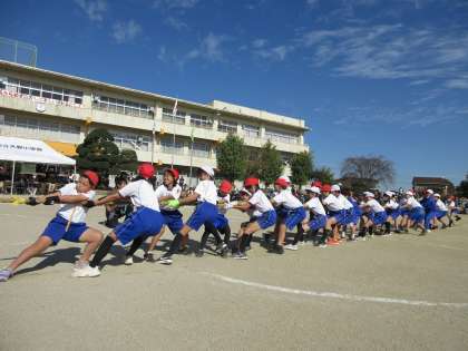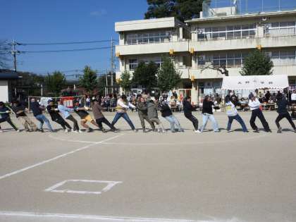 保護者による綱引きです。今年は、学年ブロックでチームを結成しました。5年生6年生児童のちびっ子チームも参戦しました。残念ながらちびっ子チームはあっという間に完敗してしましました。大人の力強さを体感できたことでしょう。