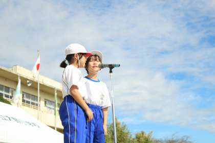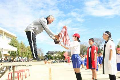 閉会式です。今年から始めた応援賞は白組でした。総合優勝は赤組でした。どちらの団も一生懸命に頑張っていました。