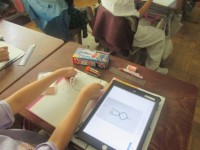 3年生の理科の授業です。豆電球がどう点灯するか調べる授業です。iPadを活用して、自分の予想を立て、実験を通して思考を深めていました。