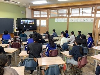 けやき台中学校と松ケ丘小学校とオンラインで小中の交流会を行いました。