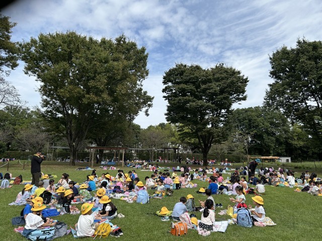 楽しいお弁当タイムです。ちょうどいい天気で楽しく食べています。