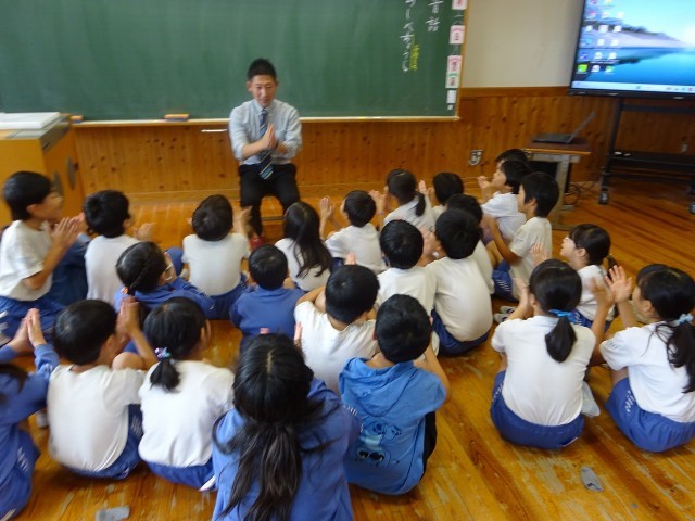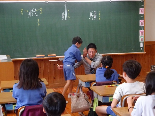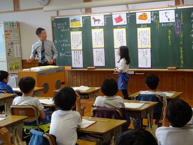 先生方が、真剣な表情で授業づくり研修に臨んでいます。今日は、筑波大学附属小学校から溝越勇太先生を講師にお迎えして3年2組で国語科の授業をしていただきました。授業前の15分間でトークゲームや漢字クイズです。3年2組の児童が目を輝かせて先生の話に集中していました。その後は「わらしべちょうじゃ」の物語文を読んでいきました。話の展開の面白さを捉えながら人物像を考えていきました。全員が自分の考えをもち積極的に意見交流して、時間が短く感じられる楽しい授業でした。先生方も学びいっぱい子供たちも満足感いっぱいの有意義な時間です。溝越先生、本当にありがとうございました。