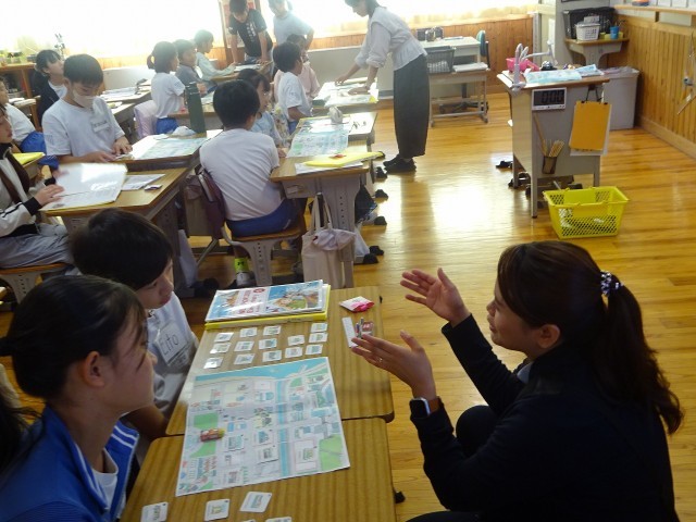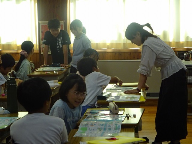 5年生がお気に入りの場所を英語で紹介し合う学習をしていました。既習の英単語を駆使してさあ、どうしたら分かりやすく伝えられるかな。