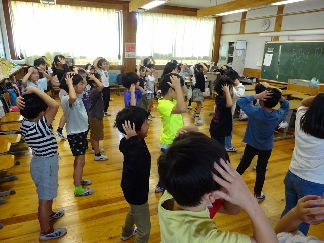 何とも可愛らしい!2年生がチェッコリ玉入れのダンスを練習中です。互いに「おしりふりふり!」と声をかけあって、楽しく踊っていました。