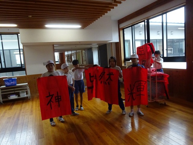 4年生が、運動会の表現運動で着るはっぴに漢字1文字を書きました。それぞれの想いを込めて、気合い十分です!