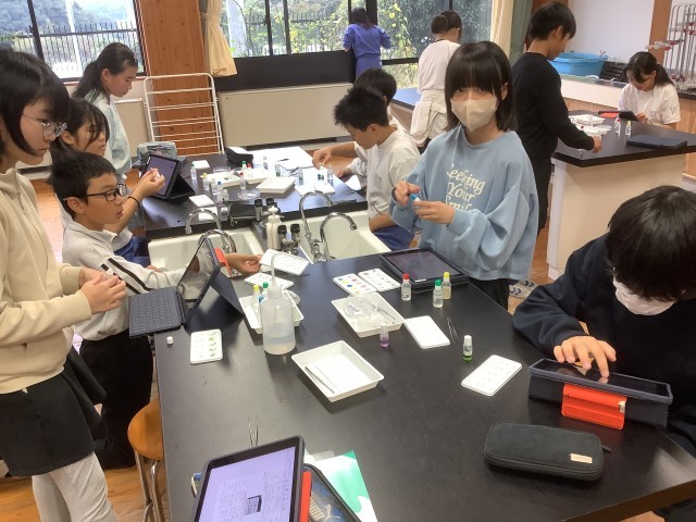 高学年の理科は、専科の先生による授業です。専科の先生による授業は、さすがに専門性が高く、子どもたちは一人一実験をして学ぶことができています。