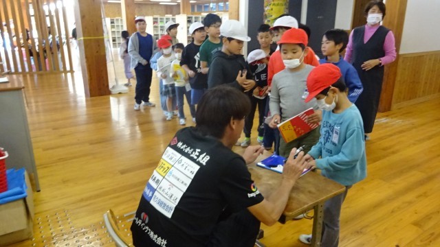 昼休みは、職員室前で熊谷浩二さんのサイン会です。2日目の今日も大行列!