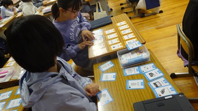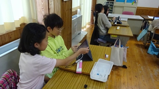 6年生がICT支援の先生とプログラミングを学習中です。今日はアカダコを使って進めるということで、子ども達は興味津々!先生の話にしっかりと耳を傾けいざいざ!体験!