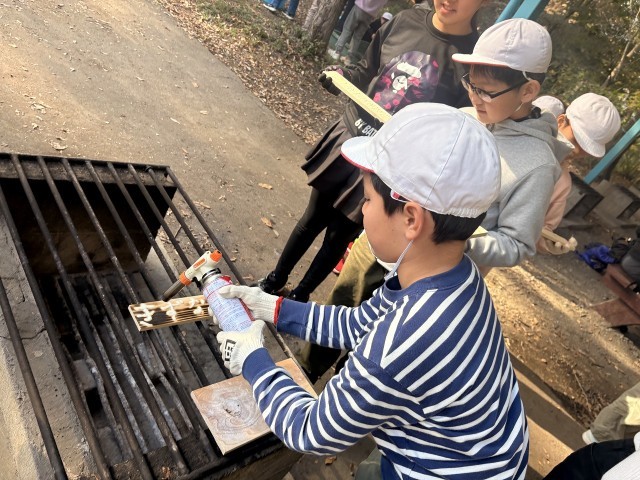 5年生の宿泊学習が順調に進んでいます。焼き板作業も楽しみながら思い出に残る作品を仕上げています。