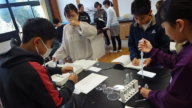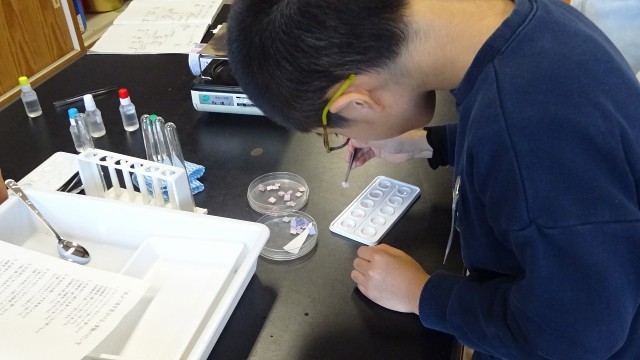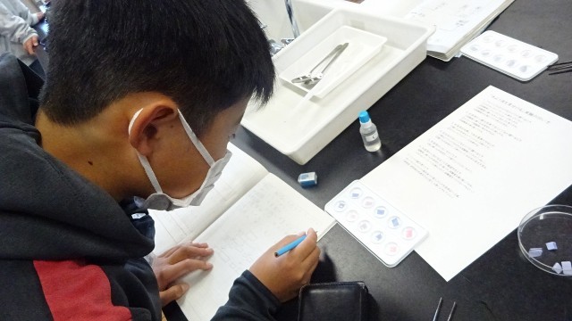 6年生の理科授業の様子です。理科専科の先生の指導を受けて、意欲的に実験に取り組む子ども達。A~Eの5種類の水溶液の正体に迫ります。一人1実験を進めながら様々な方法で正体を明らかにしていきます。積み重ねた学びをフル稼働!短時間で答えを導き出す子も見られました。