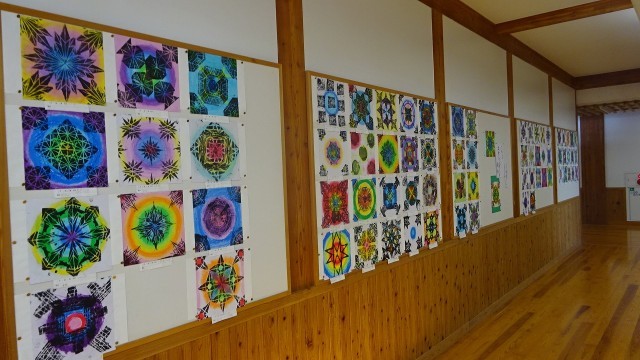図工室前の廊下に素敵な作品が掲示されました。6年生の「スチレンボード版画」です。配色やデザインがそれぞれ異なり個性も光ります。廊下がぱーっと明るくなります。ぜひご来校の際にはご覧ください。