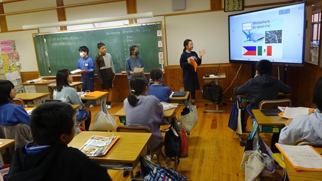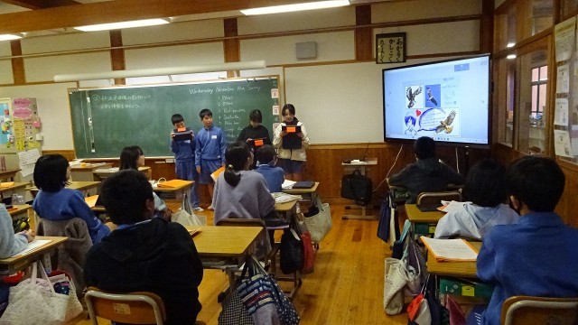 6年生が絶滅危惧動物について、グループ発表をしていました。動物の生態や直面している環境問題についてEnglish talk!プレゼンテーションも上手です。