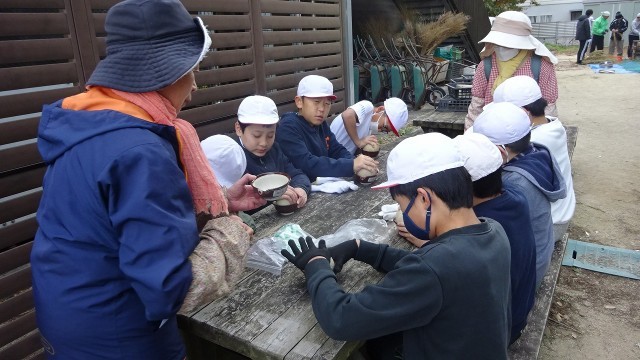 5年生脱穀体験~守谷森林クラブの皆様の協力をいただいて~