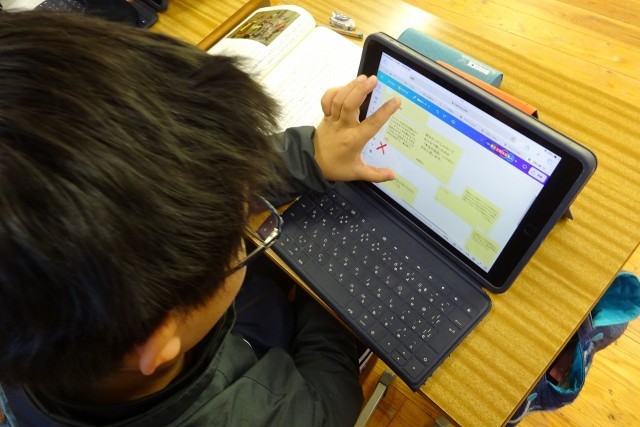 3校時、5年2組の道徳科の授業です。資料「うばわれた自由」をもとに本当の自由について考えを深めました。ICT機能をフルに活用して意見交流しました。積極的に自分の考えを出し合う子ども達の姿が見られました。