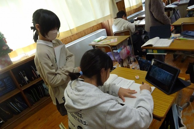 6年生の国語科の学習風景です。今日は「宇宙への思い」を読んでいました。友達と意見交流しながら読み深めていきます。