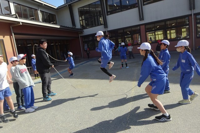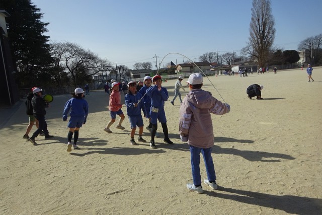 守小の縄跳びブーム、来てます!みんな楽しそうに短縄や長縄で練習しています。長縄跳びでは、跳んでから八の字に回ってまた跳んで、を繰り返しながら記録を伸ばしていきます。