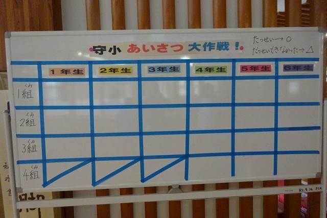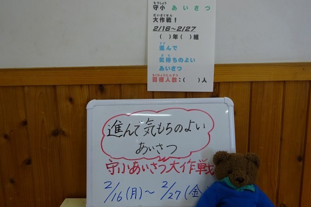 KOP第2弾「守小あいさつ運動大作戦!」が来週から始まります。KOPは「校長 思いつき プロジェクト」です。今朝は、meet集会を実施して、守小にあいさつを広げよう!と確認をしました。あいさつは心の窓・・・そんな話をしました。「進んで 気持ちのよいあいさつが広がる」そんな守小を目指します。