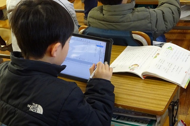 2年生の国語科では、宝物をみんなに伝える学習に進んでいます。自分の宝物について紹介するメモをタブレットを活用してまとめています。分かりやすく伝えるにはどうしたらいいかな。そして友達の宝物も気になるね。