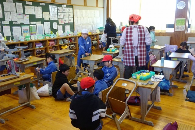 自分の机の中も整理整頓する2年生。荷物のスムーズな持ち帰りもできるね。椅子の脚に付いたほこりもきれいにします。