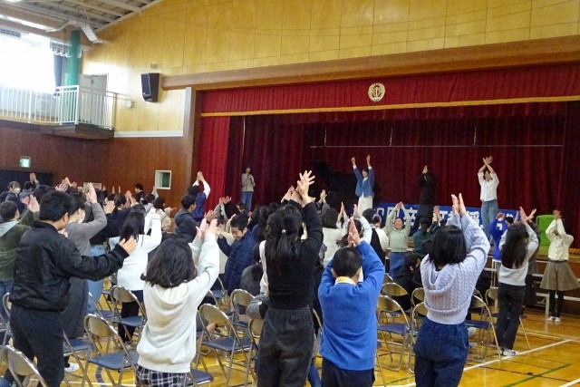 予行の後は、6年生の先生方による子ども達へのサプライズプレゼント。コントあり歌あり踊りあり。最後はみんなで元気にdance!ダンス!👯!