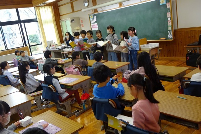 たくさん学んでたくさん成長1年生 公開日 2026/03/23 更新日 2026/03/23 お知らせ 1年生のお楽しみ会の様子です。たくさん学んでたくさん成長した1年生。しっかり発表しています。聴く態度も素晴らしい!