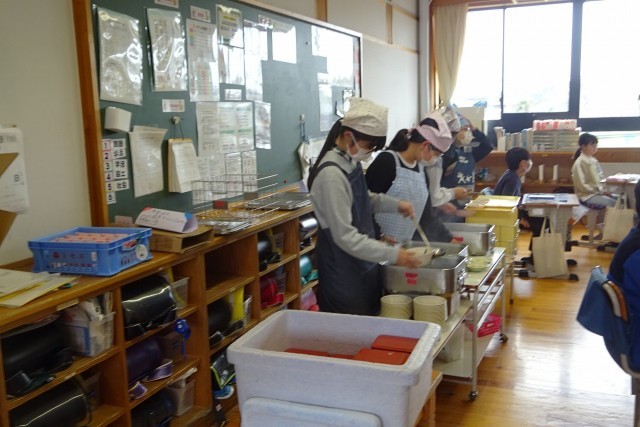 5年生の給食準備風景です。今年度最後の給食です。みんなてきぱきと準備していました。