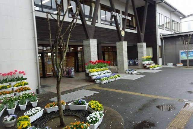本校のSSSの先生が児童用の昇降口に花鉢を飾ってくださっています。来校する方々から、「守小はいつもきれい。」というお話をいただきます。Very beautiful  Moriya  Elementary  School!