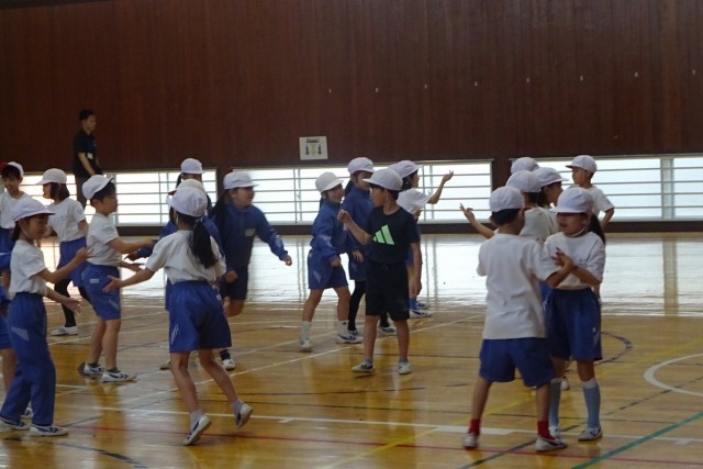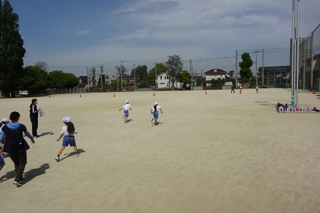 1組は体育館で身体ならしのゲーム、2組は身体測定を受けていました。3組は校庭で50m走に挑戦。1年生が入学してお兄さんお姉さんになった2年生。笑顔で様々な学習に取り組んでいます。