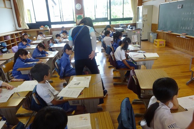 2年生はノートに漢字練習です。とても丁寧で上手!しかも、話し声が全くしない!素晴らしい集中力。全員が漢字マスターです。