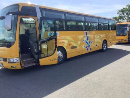 今年度は、全学年、水泳学習を実施します。昨日の6年生に続き、今日は2年生が水泳学習を行います。バスに乗って、先ほど出発しました。安全に、楽しく水泳学習を行ってきてください。