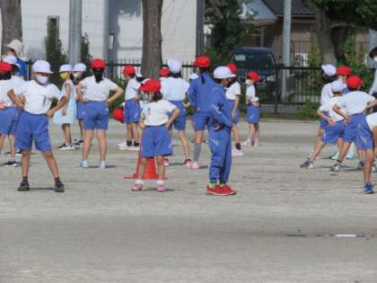 本時は、笛に合わせて、リズムよくダンスを行いました。