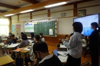 愛宕中の1年生徒オンラインで繋がり、学習を進めました。