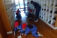 11月29日(月曜日)の放課後、明日の研究授業に向けて、教員を子供約にプレ授業を行う守小の先生です。