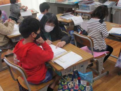 叙述に立ち返り、2人の気持ちをワークシートに書き込む子供たち、読み取りの深さに感心させられました。