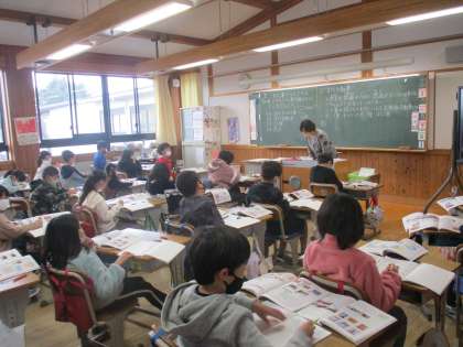 社会の教科書と、守谷市の副読本の両方を活用して、消防署の取り組みについて学びを深める子供たち。