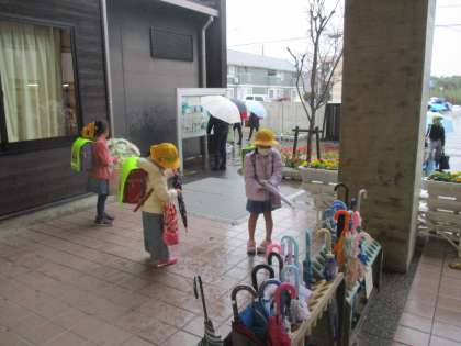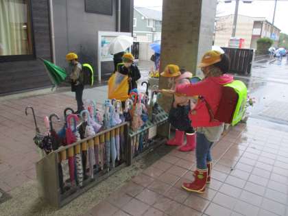 そんな中、子供たちは傘をさしたり、長靴を履いたりしての登校となりました。
