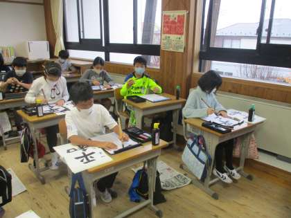 そんな日だからこそ「平和」の意味も考えて書いてほしいと話すと、深く頷き、筆を動かす子供たちに心を動かされた一コマでした。
