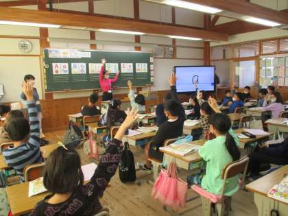 ALTと学級担任とのティーム・ティーチングで学習が展開されています。