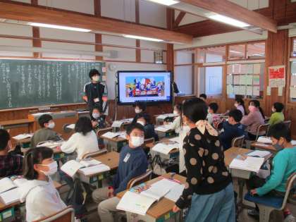 「祭りだいこ」を題材に、地域の文化を大切にするとはどういうことかについて考えています。